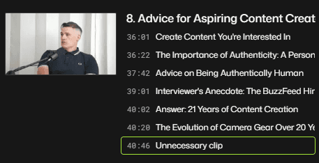 Once the structure is defined, automation becomes even more useful. You already know which sections belong in the episode and which ones carry a complete idea on their own. That makes it easier to pull podcast clips without rewatching the entire recording or guessing what might work out of context.