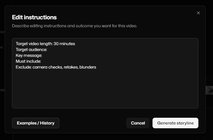 Prompting a storyline means using text-based editing instead of the timeline editing. Automated transcripts let you scan the conversation quickly, while automatic chaptering breaks a long recording into logical sections. Instead of scrubbing the timeline, you can use prompts to narrow the edit and make structural decisions without touching the timeline.