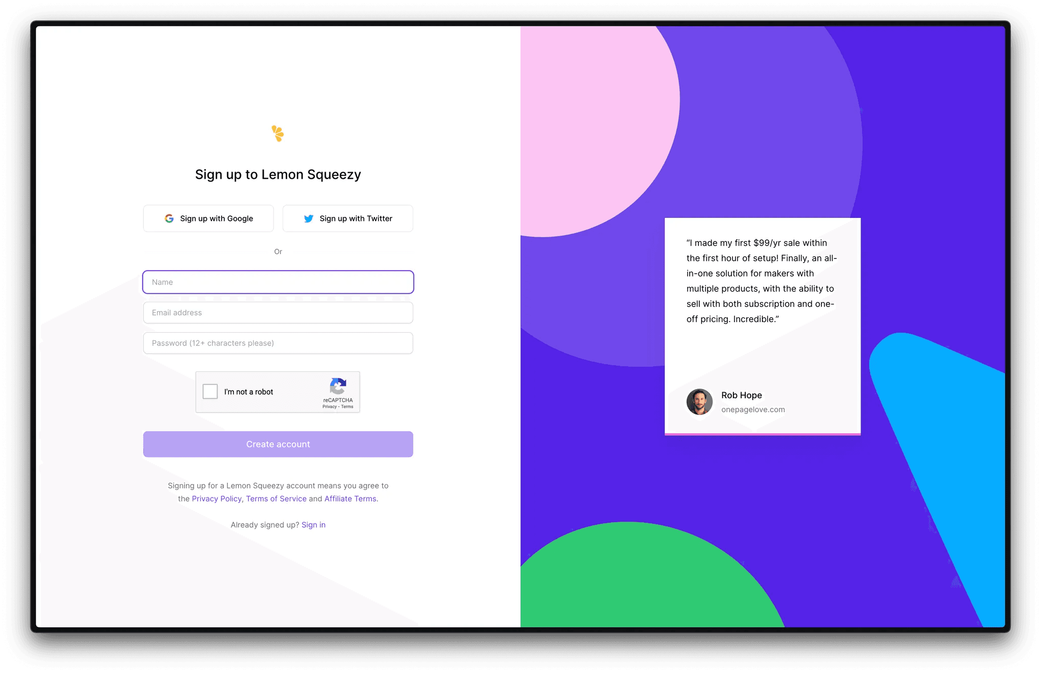 Sign-up to Lemon Squeezy through this link