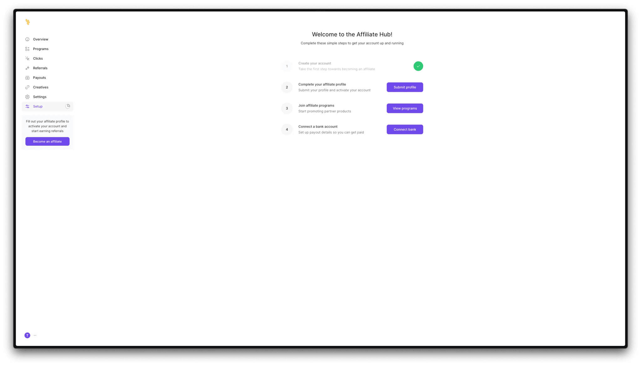 After signing-up, you’ll be redirected to this page.