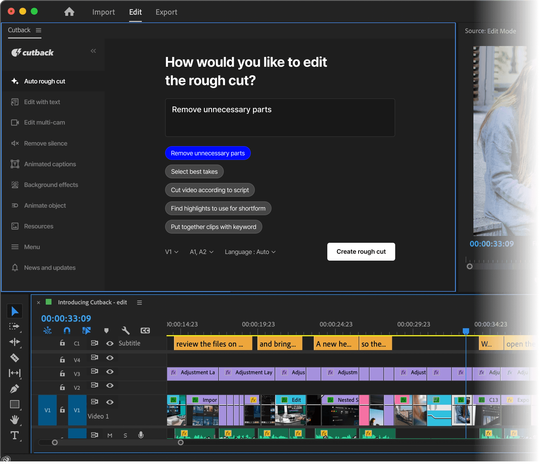 Let Premiere Assistant handle the repetitive, mundane tasks like finding the right sound bite, switching to speaker track, and transcribing with perfection.