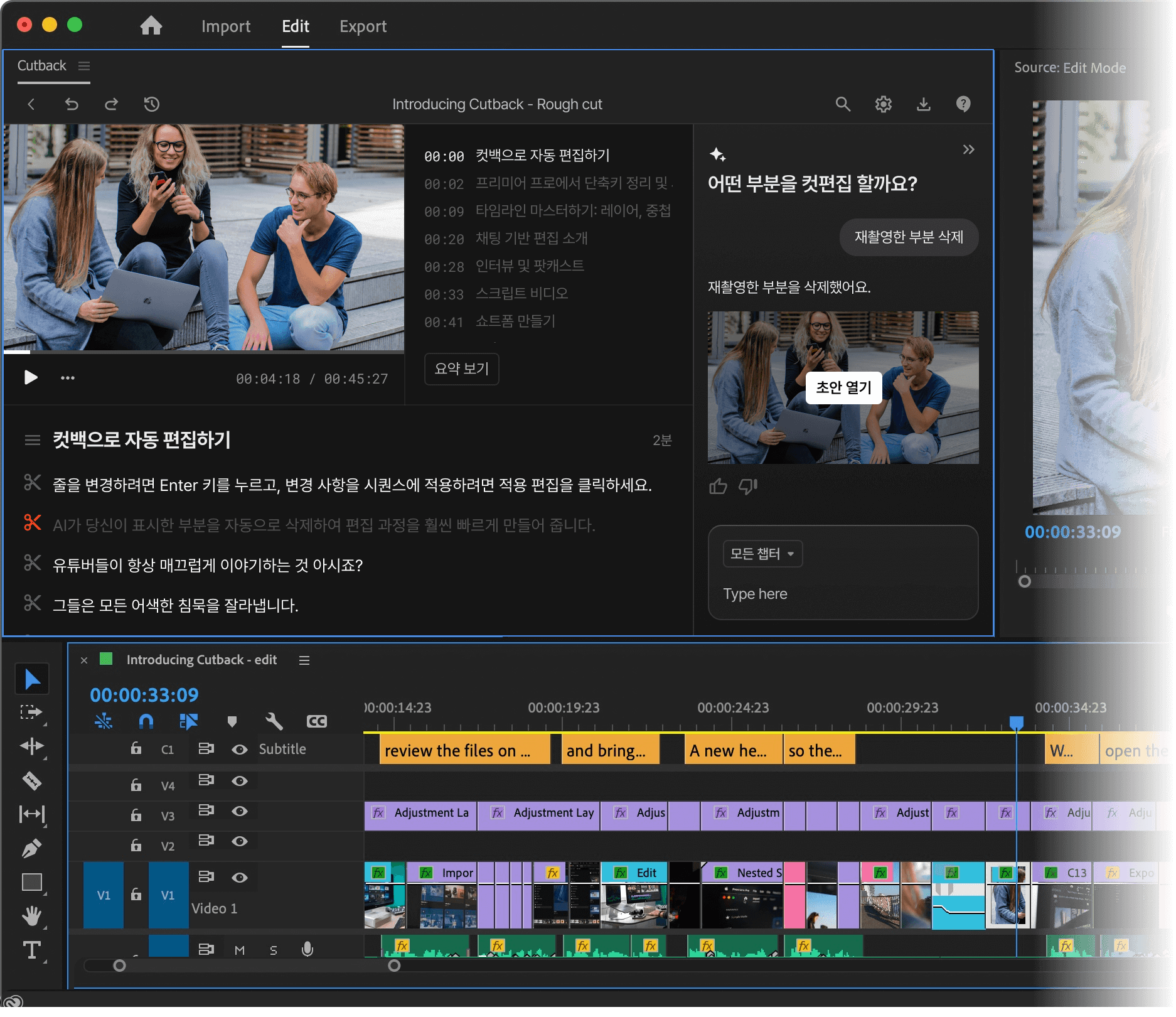Create transcriptions with 100% accuracy. Use the auto transcript to edit video like a doc right in Premiere Pro.